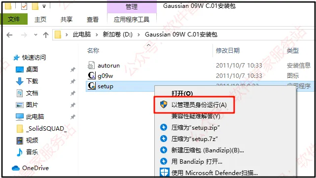 第三步:打开解压后的文件夹,选中【setup】安装程序,右击【以管理员身份运行】。