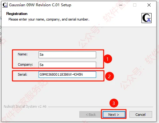 第五步:【Name】和【Company】随意输入,【Serial】输入:G9M036800118386W-4345N。