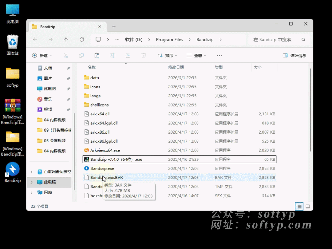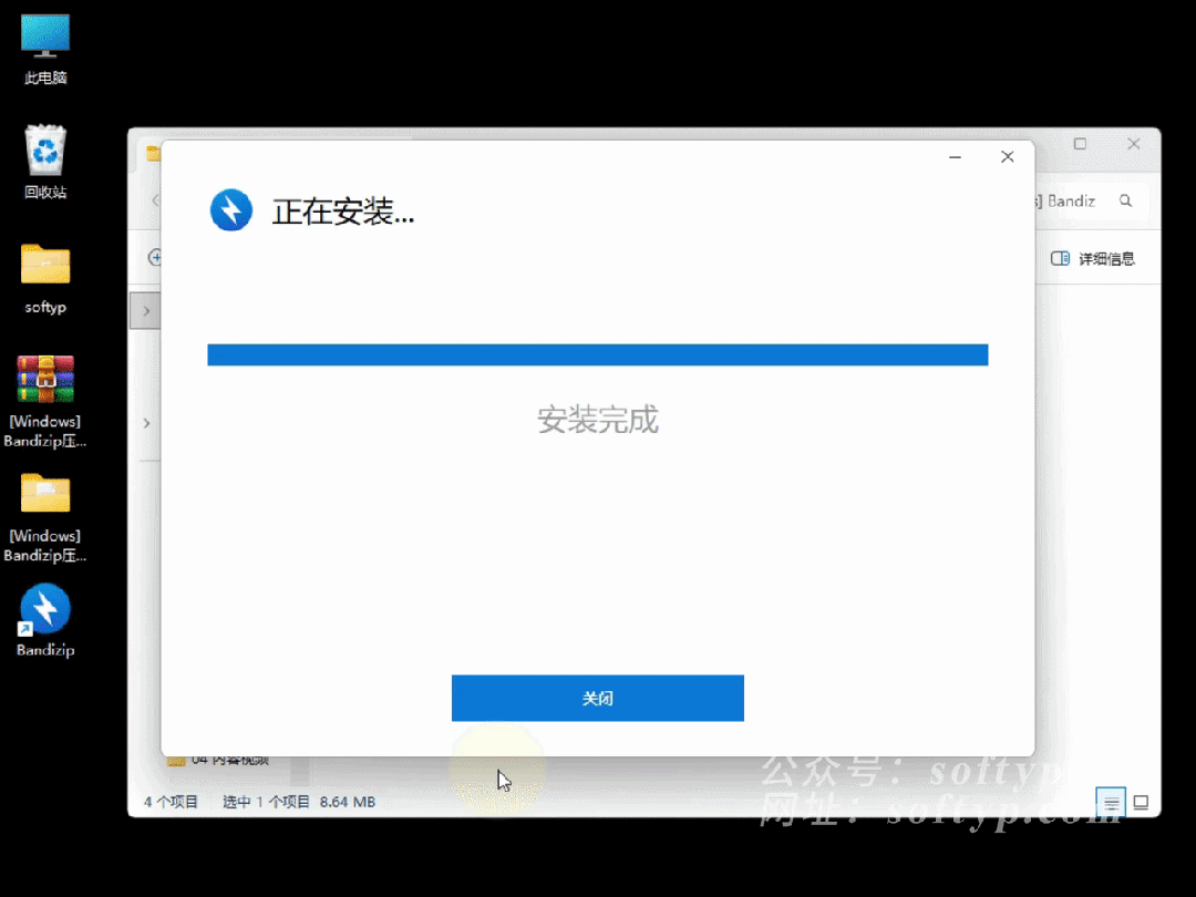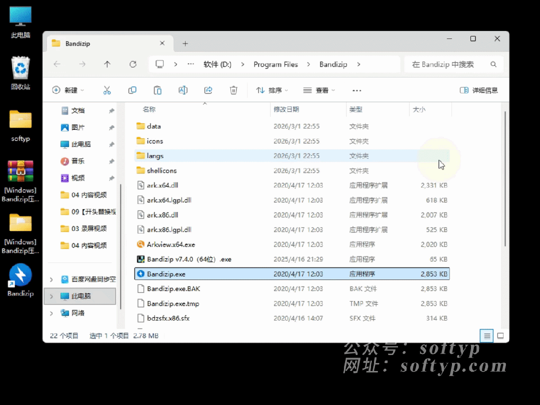 鼠标右键点击【Bandizip】桌面图标➡️点击【打开文件所在的位置】
