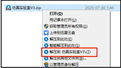 第二步:将下载好的文件选中,右击,解压到……(可能会误报病毒,恢复或允许运行并添加到白名单。)