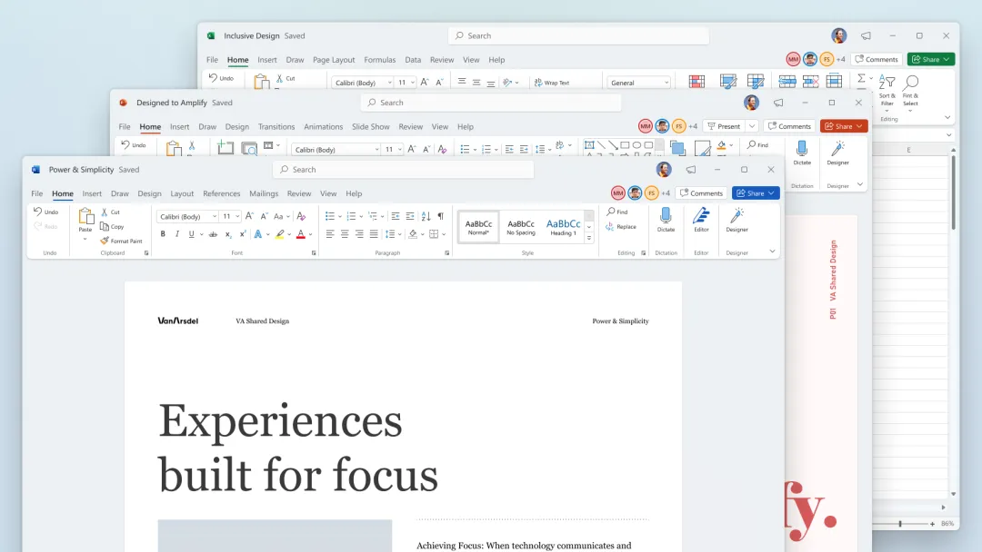 根据微软 Office Insider 官方博客[1]的介绍,为了迎接 Windows 11 的到来,微软对 Microsoft Office 进行了界面大修改,主要是对很多的界面进行了圆角矩形的设计,更加符合 Fluent Design[2]和 Windows 11 系统,这也是自 2016 年来的首次大变化,微软甚至为此专门制作了短片。