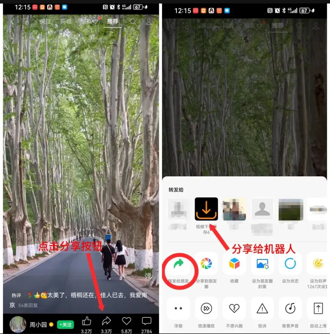 第一步:打开视频号,点击分享按钮,把视频分享给机器人
