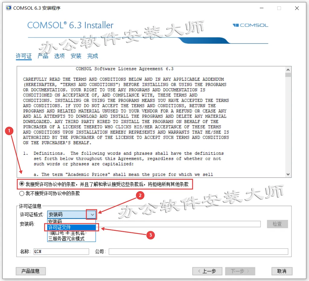 4.选择【我接受许可协议...】展开许可格式,选择点击【许可文件】。