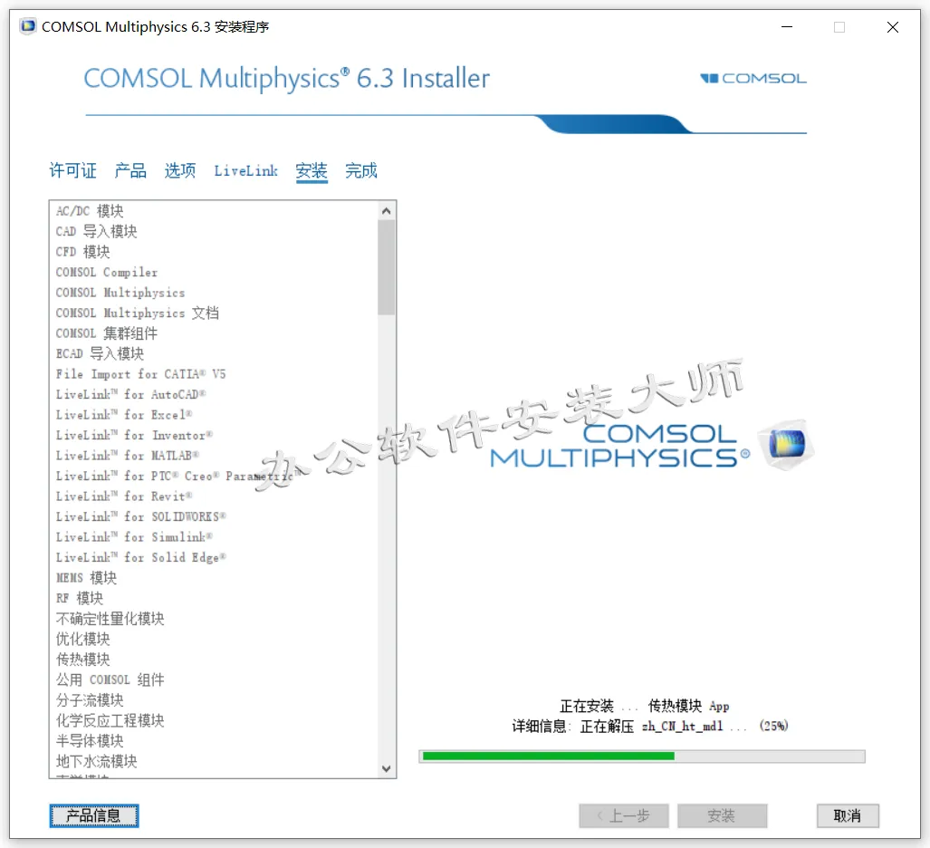 12.COMSOL Multiphysics程序比较大,耐心等待安装完成。