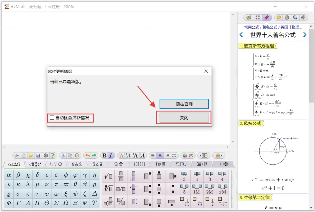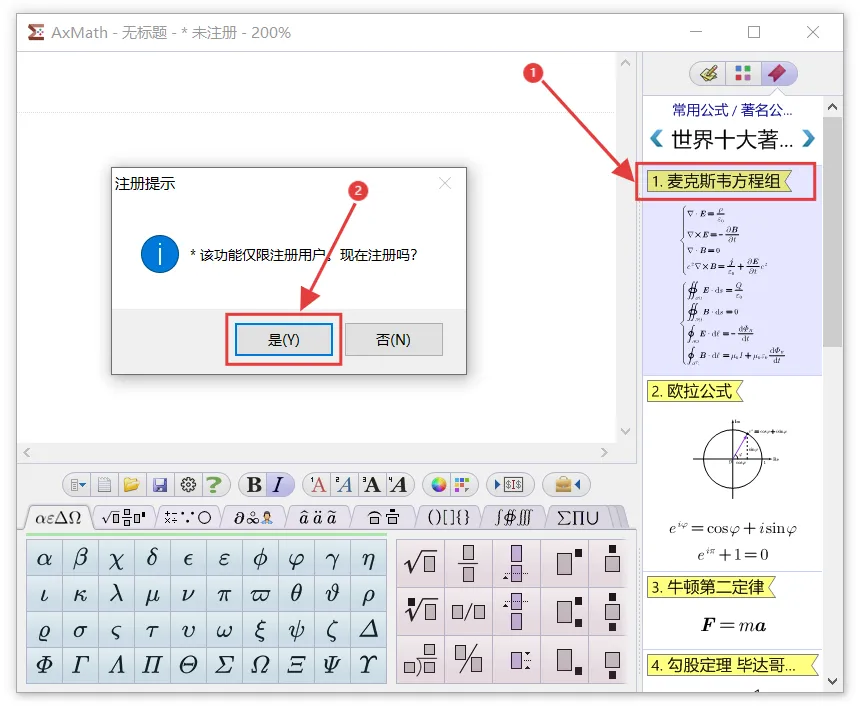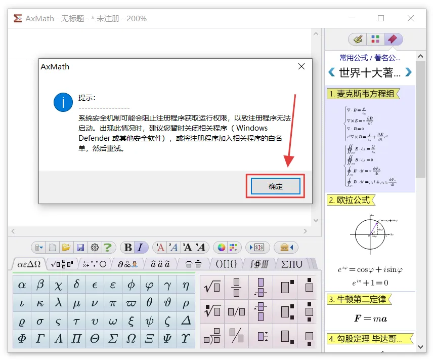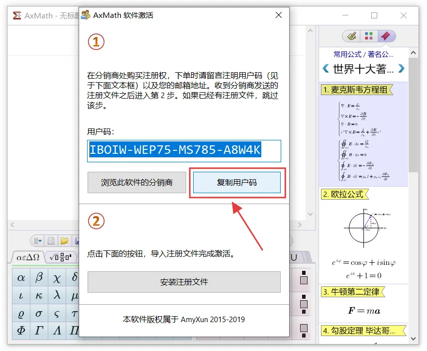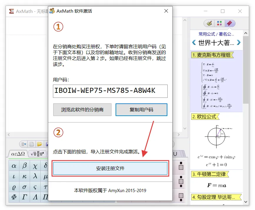 最新版AxMath2.6下载及详细安装教程,附永久免费免激活码中文AxMath安装包破解版软件下载[软件名称]: AxMath2.6[软件大小]: 9.46 MB[安装环境]:Win 7及以上系统[下载链接]:(建议手机保存后到电脑端打开,下载解压无需任何密码)夸克:https://pan.quark.cn/s/f8858f939921【腾讯文档】Adobe XDhttps://docs.qq.com/doc/DQmVEc0JBcnlIUVVU【腾讯文档】Adobe XDhttps://docs.qq.com/doc/DQmVEc0JBcnlIUVVU[温馨提示]:我们提供用户下载的所有内容均来自互联网。仅限技术交流,不得用作商业。开始教程:注意!!!开始解压安装前一定要退出杀毒软件 (不然会误删激活工具)(包括第三方杀毒软件和电脑自带、防火墙、Windows Defender和实时保护等会拦截删除激活文件,安装完再打开!)不会退出点击这里安装前电脑先断网!安装前电脑先断网!安装前电脑先断网!1.把下载好的压缩包解压出来,没有解压软件安装一个再操作。2.双击打开解压好的【AxMath2.6(64bit)】文件夹。3.选中【Setup】鼠标右键选择【以管理员身份运行】。4.弹窗点击【OK】。5.点击【我接受】。(注意!安装请先断网,关闭Office和WPS软件,否则安装过程可能不正常)6.根据需求勾选要安装的组件,然后点击【下一步】。(默认全选)7.更改安装路径,可以把地址栏的首字母C改成D,则表示程序即将安装到D盘,选择好点击【安装】。(注意!安装路径和文件夹不要有中文)8.程序安装中。9.直接点击【完成】。10.如果有此弹窗,先取消【自动检测更新情况】,再点击【关闭】,没有直接忽略。11.先点击【麦克斯韦方程组】,小弹窗出来点击【是】。12.点击【确定】。13.选中点击【复制用户码】,不要关闭此窗口。14.返回解压好的文件,选中【Crack】压缩包,鼠标右键点击【解压到当前文件夹】。15.选中解压出来的【Keygen】程序,鼠标右键选择【以管理员身份运行】。16.把刚才复制的【用户码】粘贴到这里,然后键盘按【Enter】。(回车键)17.会自动生成一段注册激活文件。18.返回安装界面,点击【安装注册文件】。19.选中刚才生成的注册激活文件,点击【打开】。20.弹窗显示注册成功,点击【确定】,关闭所有窗口。21.回到电脑桌面,双击AxMath快捷方式打开软件。22.已经安装成功,可以开始使用!(安装完成可以把网络重新连上)23.打开World文档可以看到AxMath公式编辑器已经自动嵌入。声明1.安装提供的所有下载文件均是网络收集,请于下载后的24小时内删除。如需体验更多乐趣,请支持正版。2.我们提供用户下载的所有内容均来自互联网。如有内容侵犯您的版权或其他利益的,请联系我们会在收到消息后24小时内处理。