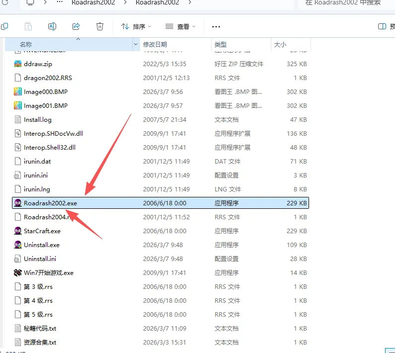 4.双击打开【Roadrash2002.exe】启动程序 如图