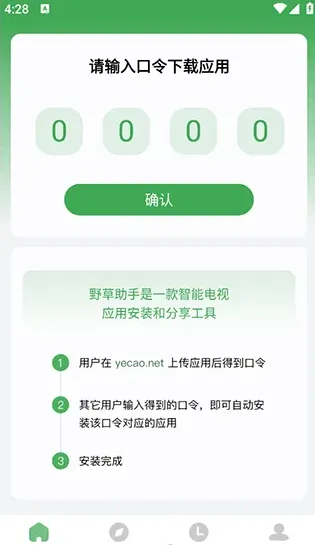 1、首先电视和手机上都安装了对应的野草助手app,然后打开手机上的app输入口令