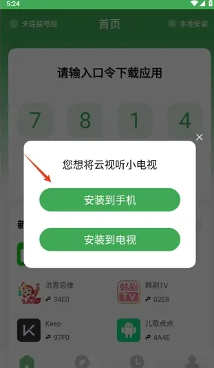 野草助手机版怎么得用口令安装应用到电视上
