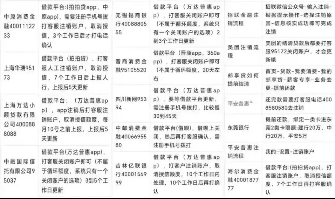 为了帮大家彻底解决这个麻烦,今天整理了30多个主流平台的注销方法和官方客服电话,是一份难得的、能节省大量查找时间的“工具包”或“地图”以中信为例,你的授信账户数如果超过2个,中信就很难做了,既然已经不用了,干嘛不注销呢?为了保护个人征信的整洁度、消除未来大额贷款隐患、并降低个人信息安全风险,在确定不再使用某个网贷平台后,主动完成账户注销是一个必要且谨慎的财务习惯。《一份收藏就够!30+主流网贷平台注销指南与官方客服大全》如果你的网贷平台不在上述列表中,可按以下流程操作:过验证→查规则→备资料→留凭证。登录验证:登录平台官方APP或官网,确保账户状态正常(无冻结、未结清欠款)。