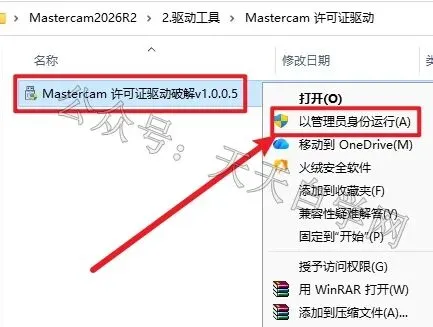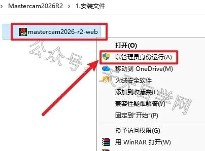 3.选中mastercam2026-r2....文件 ,点击鼠标右键选择以管理员身份运行。