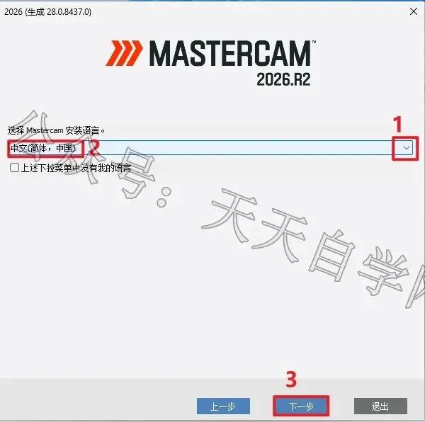 6.点击下拉选项,选择 中文。然后点击下一步。