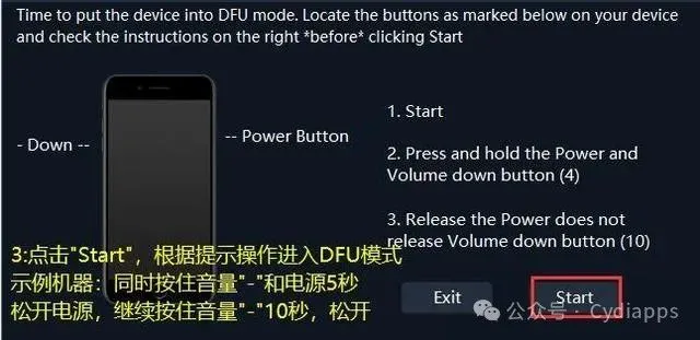 点击引导进DFU模式,按提示操作进入DFU模式。