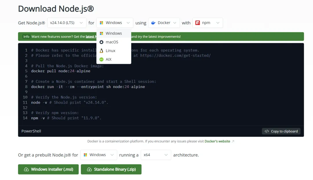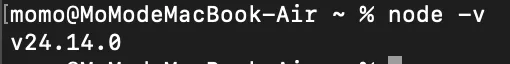 有安装过 Node.js 的,在终端输入下面的命令,检查版本,必须满足 22 及以上版本。