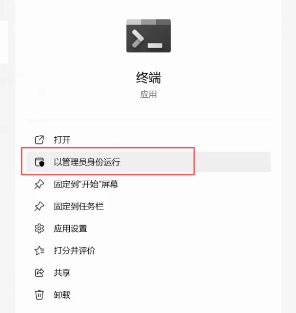 搜索 PowerShell ,右键选择以管理员身份运行。