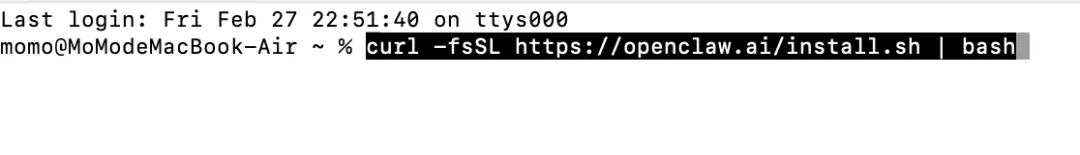 curl -fsSL https://openclaw.ai/install.sh | bash