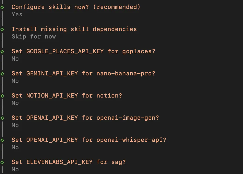 5.技能Skills配置:选Yes,然后回车,空格选择跳过,再回车。