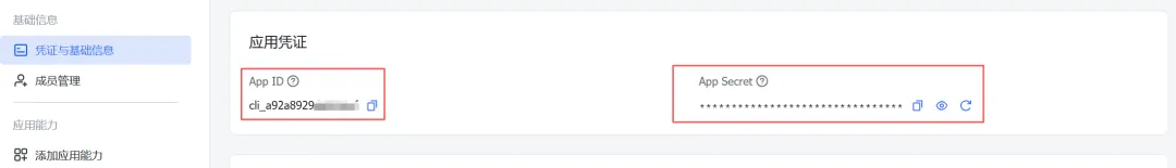 选择凭证与基础信息,获取 App ID 和App Secret 。