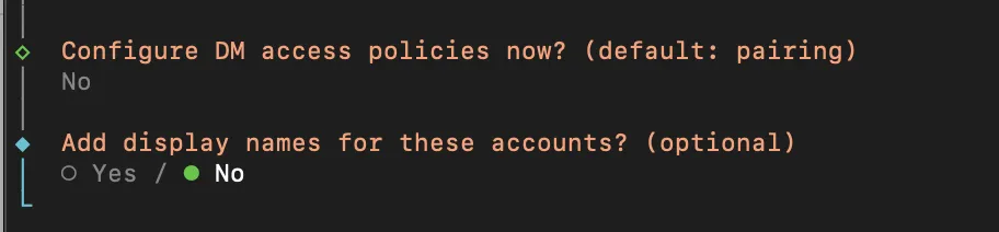 上面配置聊天渠道的时候选择Skip跳过的,现在可以输入下面的命令重新配置