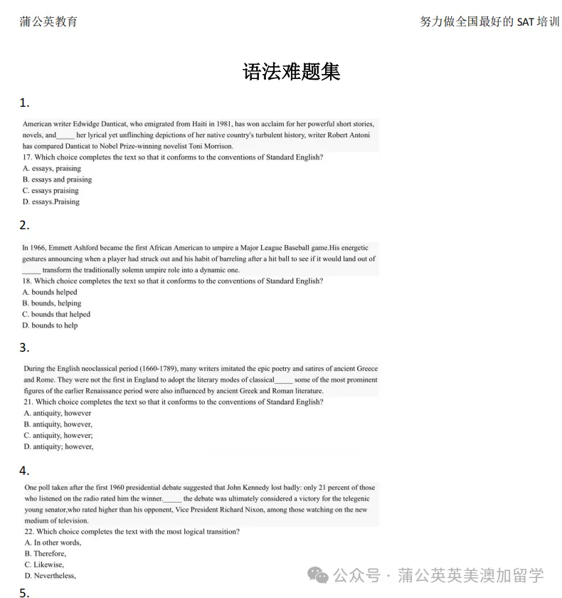 完整版资料关注回复【SAT语法难题】领取