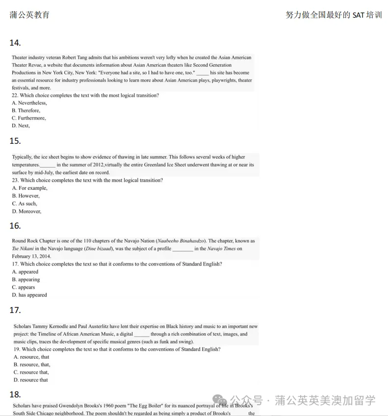 最新SAT备考资料包下载!SAT考前必看SAT难题合集—73道语法难题汇总来啦~~