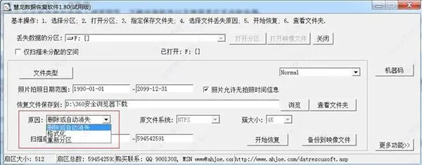 需根据实际情况选择文件丢失原因,分区类型按原文件系统选择,簇大小默认即可;点击开始恢复后软件会先扫描源盘扇区,扫描完成后自动恢复文件,结束后会提示恢复成功的文件数量。