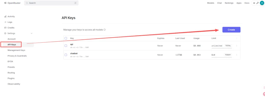 这里我们输入 openrouter