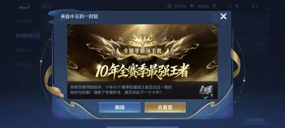 可就在他心态彻底崩掉,准备退出游戏的时候,邮箱突然弹出大量系统通知。原本还满是怨气的他,点开邮箱之后直接愣住,里面全是标注着十年王者玩家的专属福利邮件,不仅二月份有奖励,一月份也收到过相同的福利。而当他打开邮件之后,里面的内容直接让围观网友羡慕到不行,整整 21 款最新皮肤免费领取,其中包括李信无双、伽罗珍品传说沧流箭,甚至还有全套马年限定皮肤,只要是二月份上架的新皮肤,他全都可以一键领取。