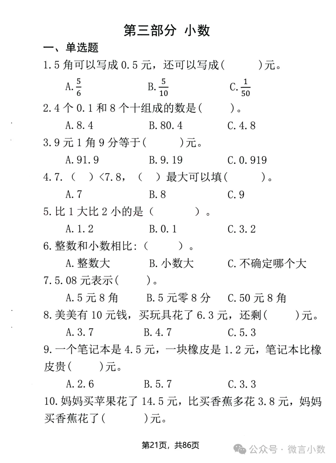 2026寒假小学数学预习资料