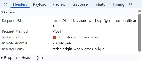 先说说官方学院证书这件事。地址在:build.avax.network/academy/avalanche-l1/avalanche-fundamentals/get-certificate。这个课程算是 Avalanche 的入门必修课,涵盖雪崩共识、多链架构、虚拟机定制等五大核心模块,还要完成 21 道配套测验才能解锁结业证书,设计得挺正规,结果卡在最后一步——无数开发者老老实实学完课程、刷完所有测验,满心点下证书下载按钮,跳出来的只有冷冰冰的内部服务器错误。