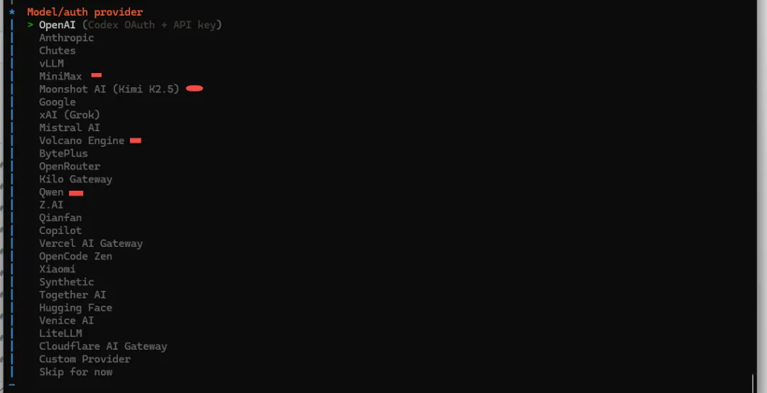 其他的skills、chennels等可以先跳过,后面如果想重新配置,可运行命令