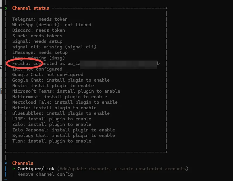 openclaw configure选择channels