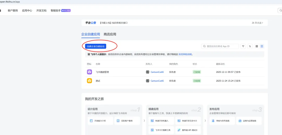 1、开发者后台创建应用https://open.feishu.cn/app