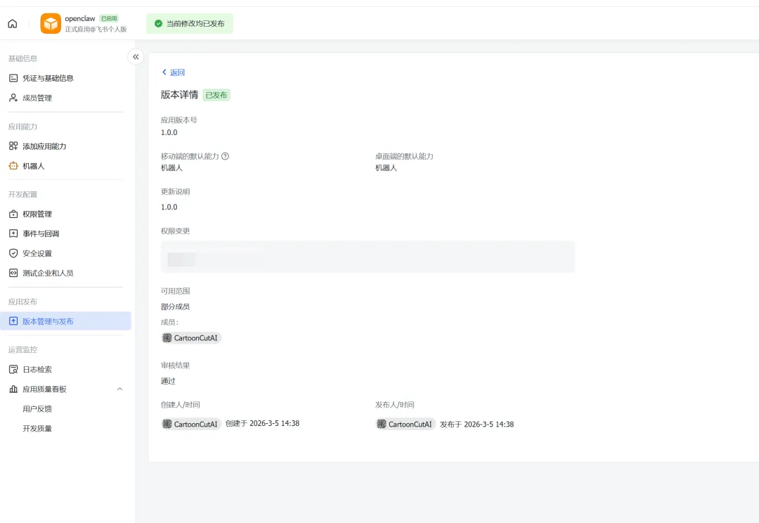 具体权限开通,也可访问这里链接https://github.com/m1heng/clawdbot-feishu开通权限
