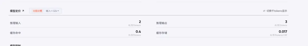 价格,百万token,输入2块钱,输出3块钱,我选的这个,因为这个便宜些
