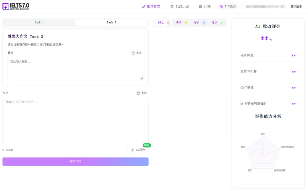 欢迎体验【雅思写作AI批改工具】