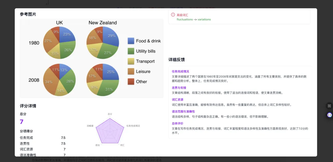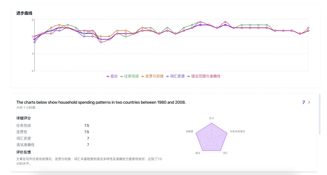 ✅ 写作记录自动存档+得分趋势曲线图,你的成长轨迹全程可视!