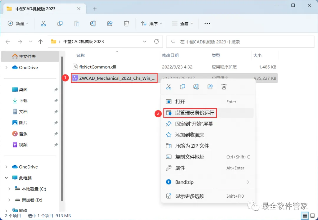 1、下载中望CAD机械版 2023软件安装包到电脑上,右键选择【解压到中望CAD机械版 2023\】