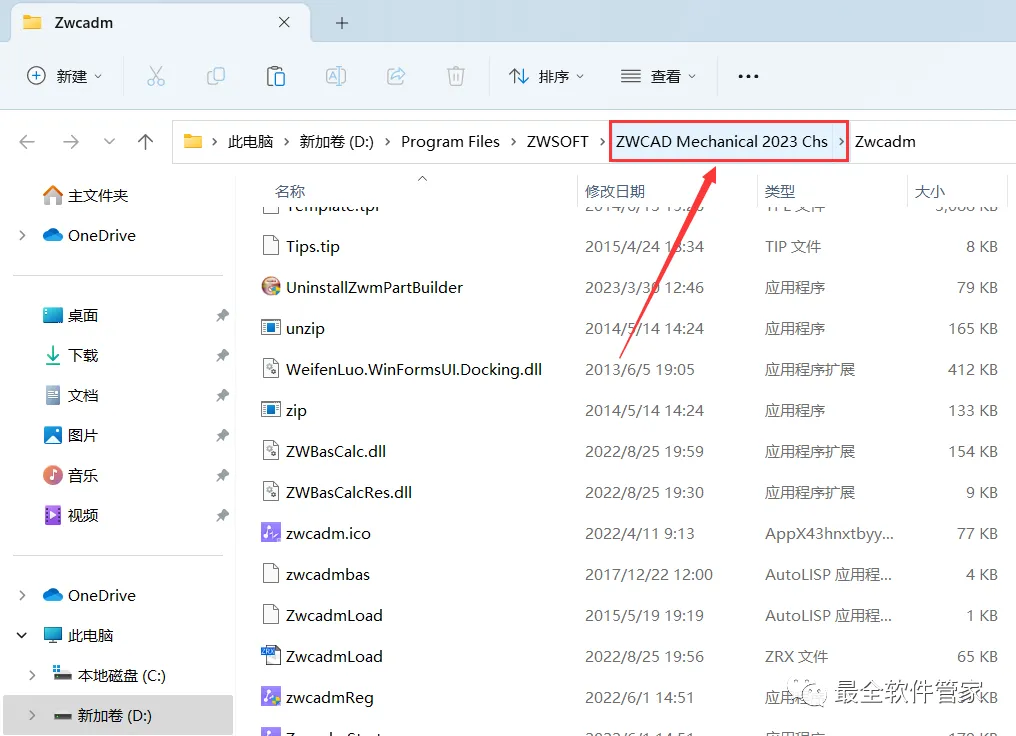 10、点击路径上的【ZWCAD Mechanical 2023 Chs】