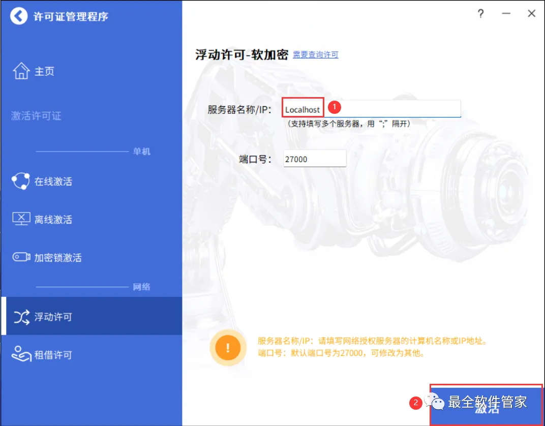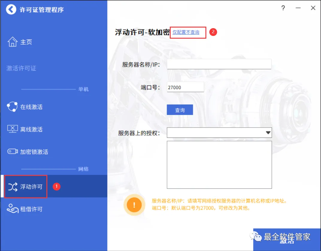 17、点击【浮动许可】,再点击【仅配置不查询】