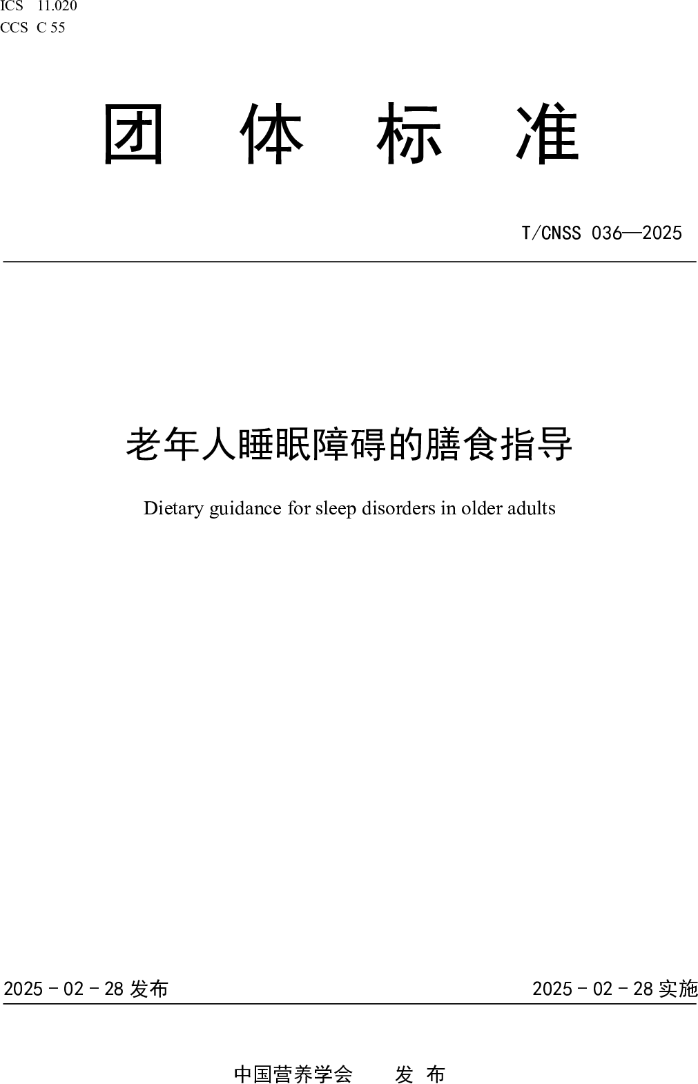 【标准下载】老年人睡眠障碍的膳食指导(2025年)