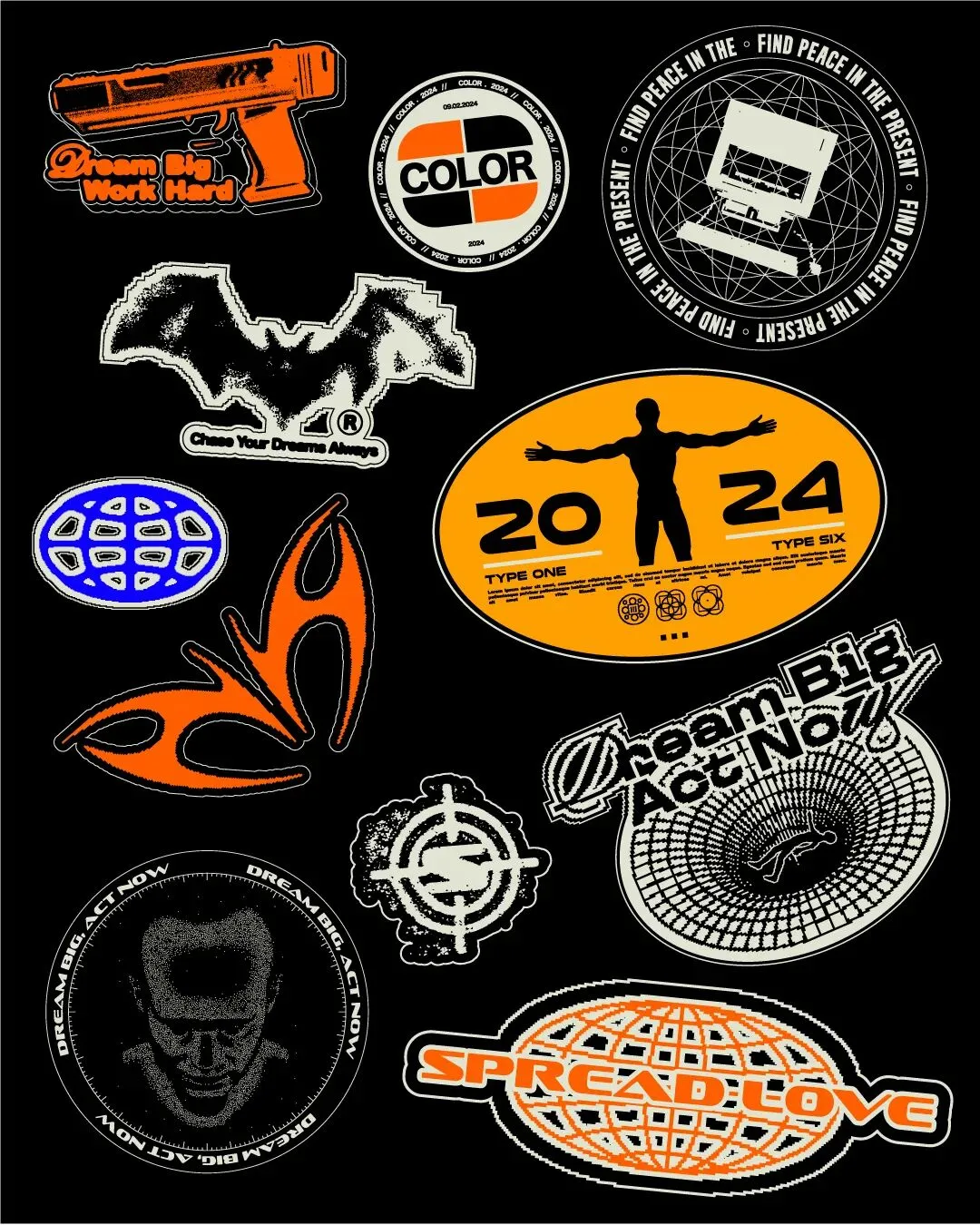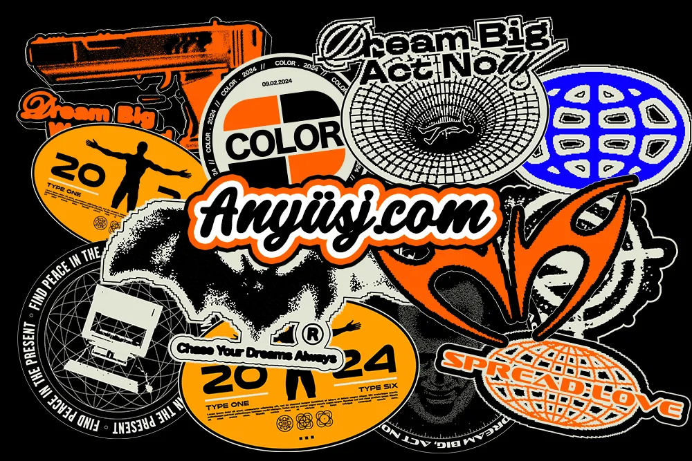 11个复古ASCII赛博未来艺术贴纸AI分层logo徽标