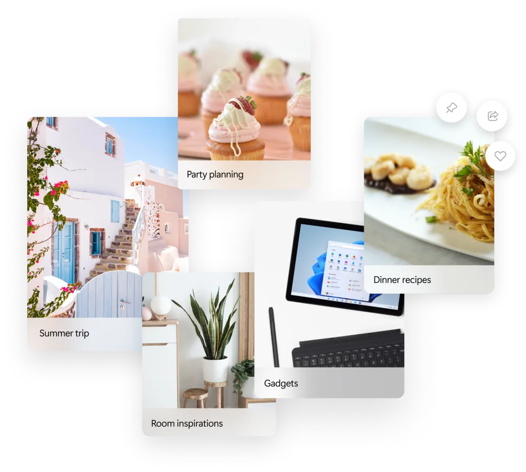 Microsoft Edge中的集锦可帮助你跟踪你在网页上的想法。无论你是在购物、计划旅行、收集研究笔记或课程计划,还是只想从上次浏览网络是离开的地方继续。