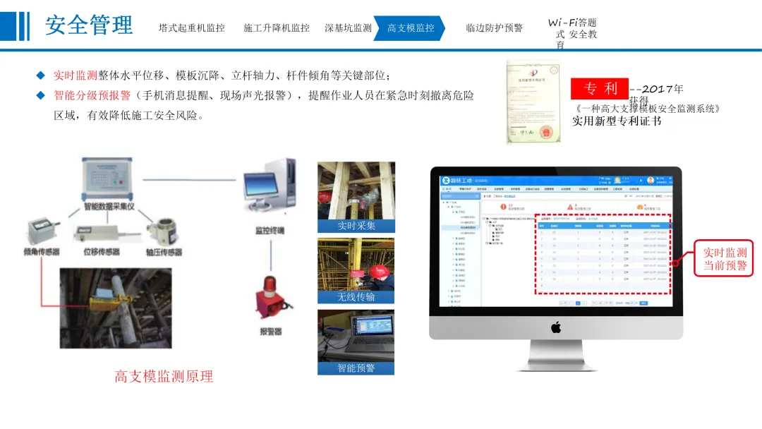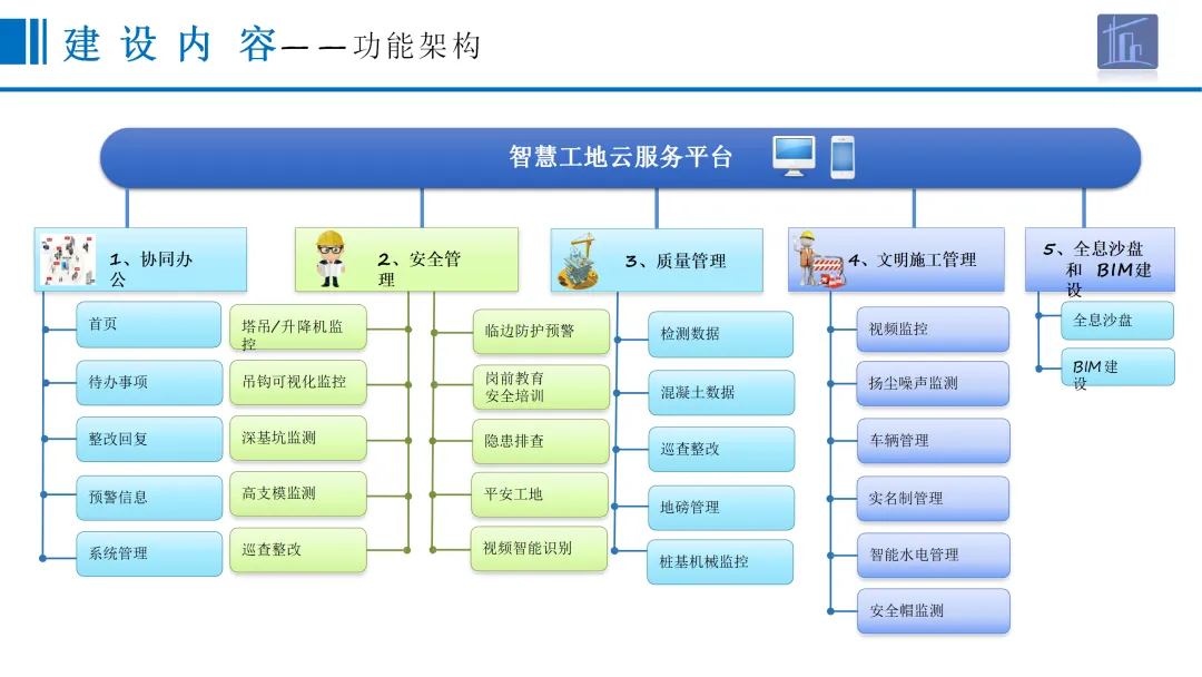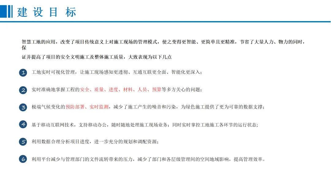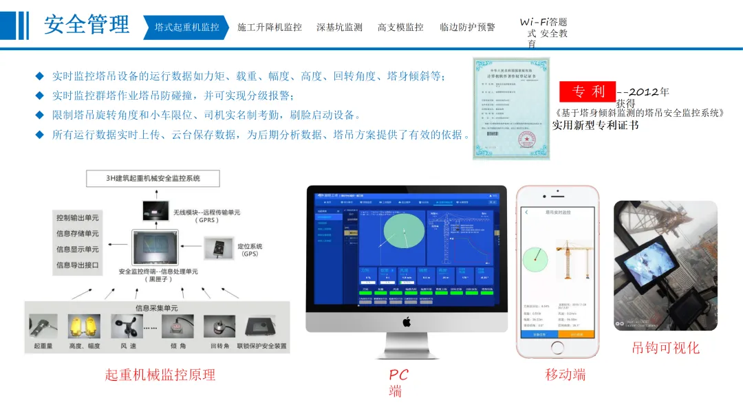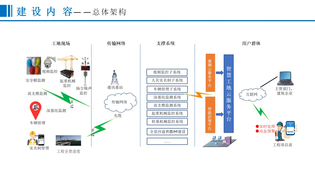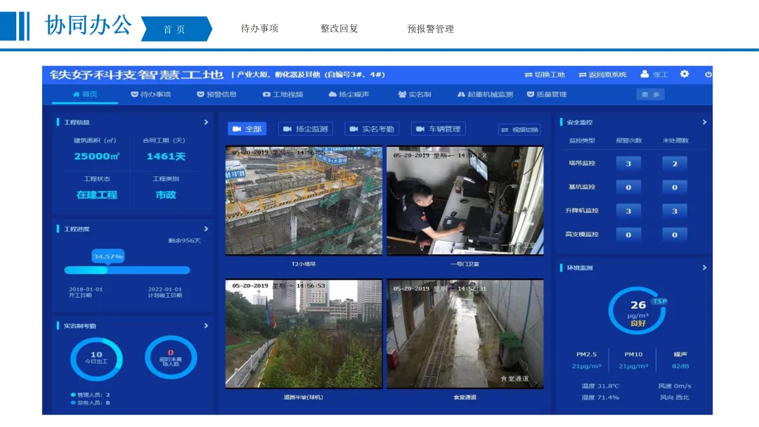 本方案围绕建筑行业数字化转型需求,针对当前工程建设规模扩大、施工技术复杂化带来的质量安全管理难题,提出一套覆盖项目全周期、全要素的智慧工地整体解决方案。在“一带一路”、新型城镇化等国家战略背景下,方案以物联网、人工智能、5G通信等技术为支撑,构建“感知—传输—平台—应用”一体化架构,实现业主、施工、监理等多方对工程质量、安全、进度、成本的动态可视化管理。在建设内容层面,方案从协同办公、安全管理、质量管理、文明施工、全息沙盘五大维度展开。协同办公模块聚焦待办事项、预报警管理、整改回复闭环,打通与主管部门平台数据壁垒,实现线上高效流转。安全管理模块部署塔吊/升降机监控、深基坑/高支模传感监测、临边防护预警、Wi-Fi答题式教育及VR安全体验,形成“实时监控—智能预警—应急处置”闭环机制。质量管理涵盖检测数据对接、混凝土质量追溯、智能地磅管控、巡查整改流程化及桩基机械北斗引导施工,确保关键工序可追溯、可管控。文明施工通过视频监控、扬尘噪声联动喷淋、车辆智能识别、实名制考勤及安全帽AI识别,落实绿色施工与人员规范。全息沙盘与BIM技术构建三维可视化数字孪生模型,支持4D/5D施工模拟与全生命周期信息贯通。产品优势体现为实时自动预警、移动办公、闭环管理、智慧联动四大特征,实现扬尘超标自动喷淋、未戴安全帽智能提醒等场景化应用。方案最终以全息沙盘沉浸式交互与BIM全周期协同,推动工地管理从“被动应对”走向“主动智能”,为建筑企业实现降本增效、安全合规、绿色低碳提供可落地的数字化路径。