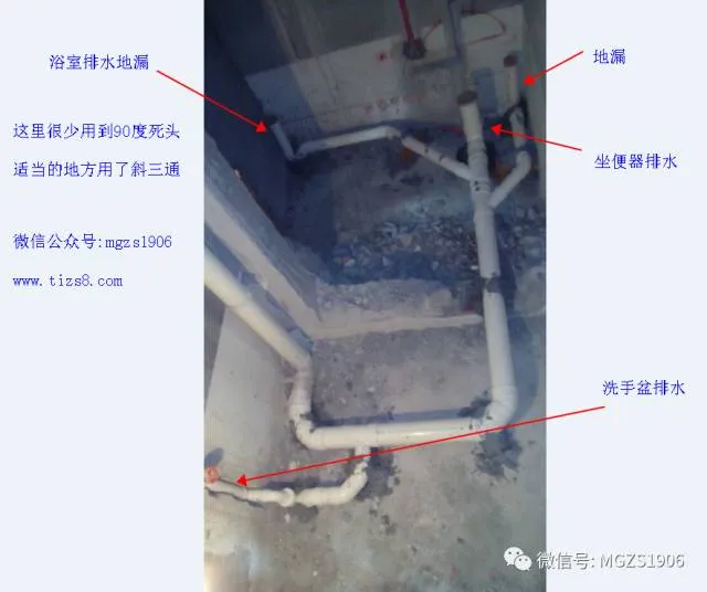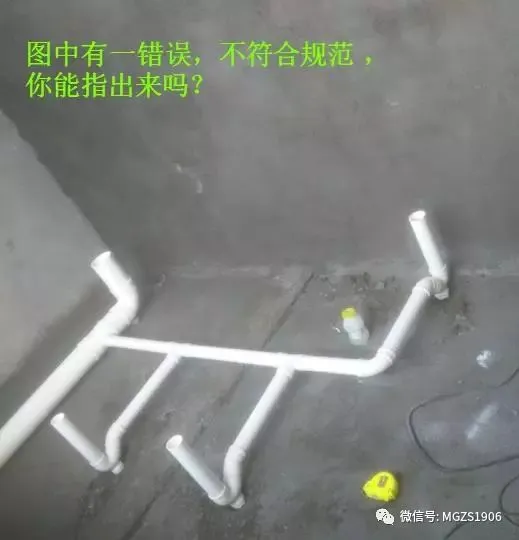 这幅是现场施工同层排水图!实际有一个非常明显的错误!大家看出来了吗?有人来回答吗?下图给大家解答