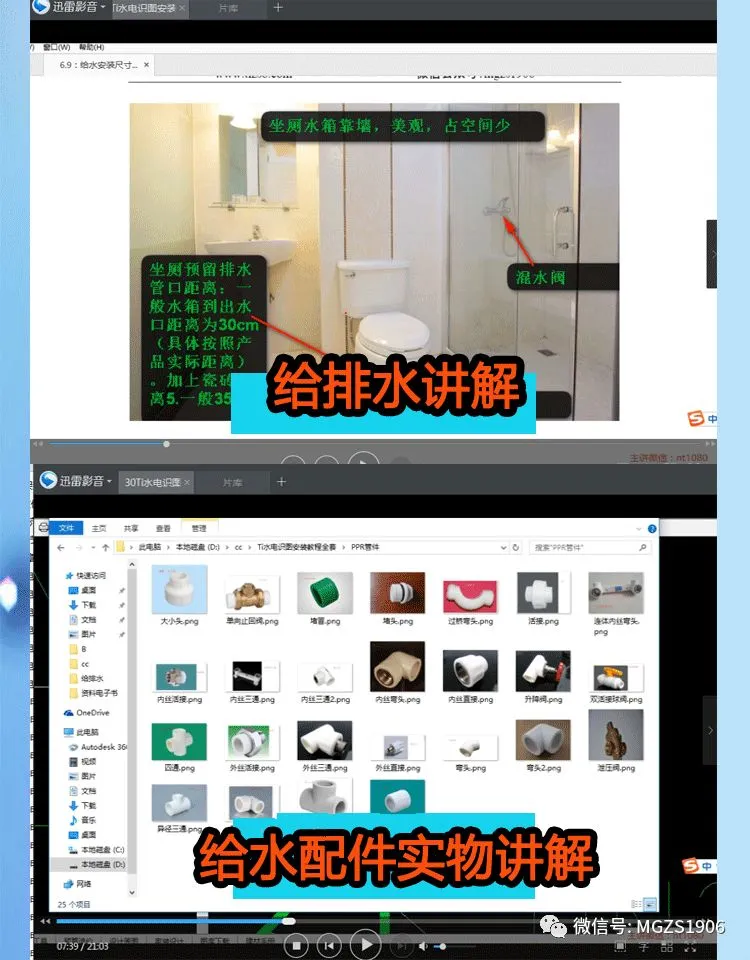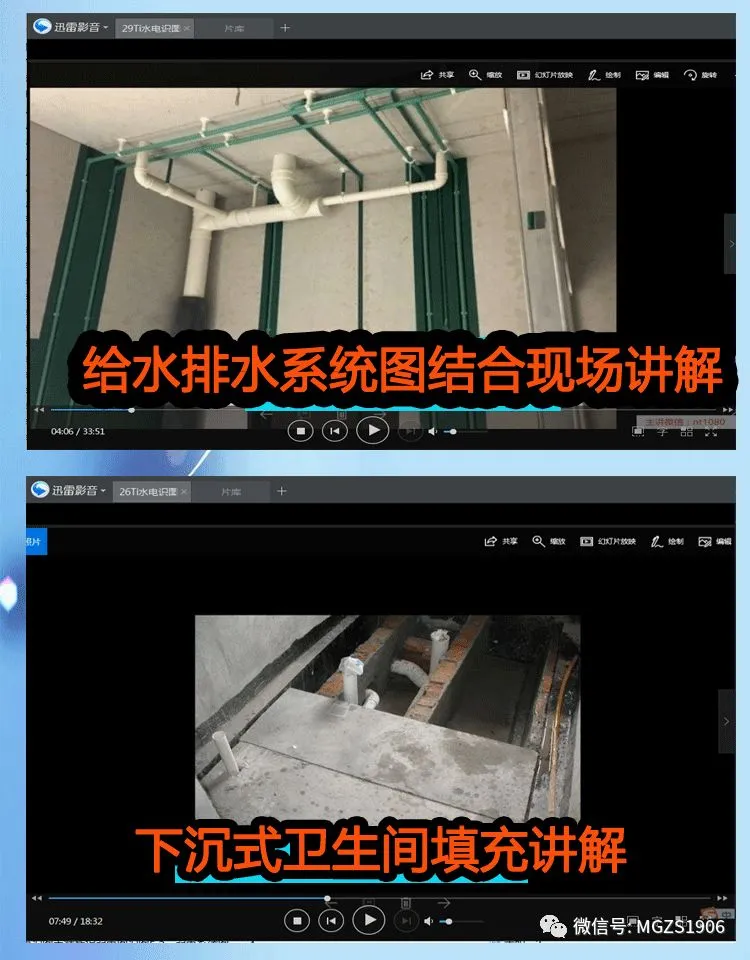 而上面那个同层排水最明显的错误就是同层排水放了带检查口的存水弯!那教程中有没有详细的介绍施工规范和施工注意事项呢!答案是肯定有的!那套视频详细地介绍了看图中结合现场图!详细的教大家学会看图施工!施工规范!每个图中的小标识都讲得明明白白!让大家学会看图纸!看图纸施工!不要以为图中的标出来的东西没有!其实每个都有它表达的用处!而视频教程就带领大家从预埋到安装!让你不必