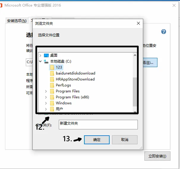 12.更改安装目录,13.点击确定