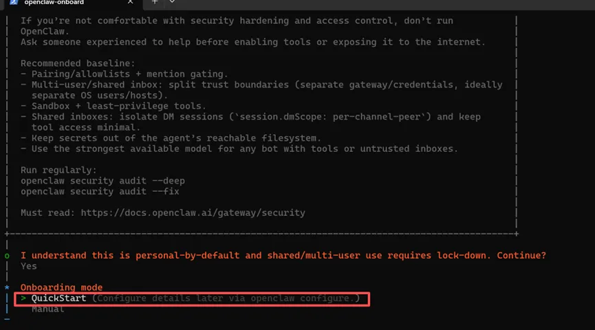 权限说明:OpenClaw需要获取电脑操作权限来实现自动化,建议安装前清理敏感信息