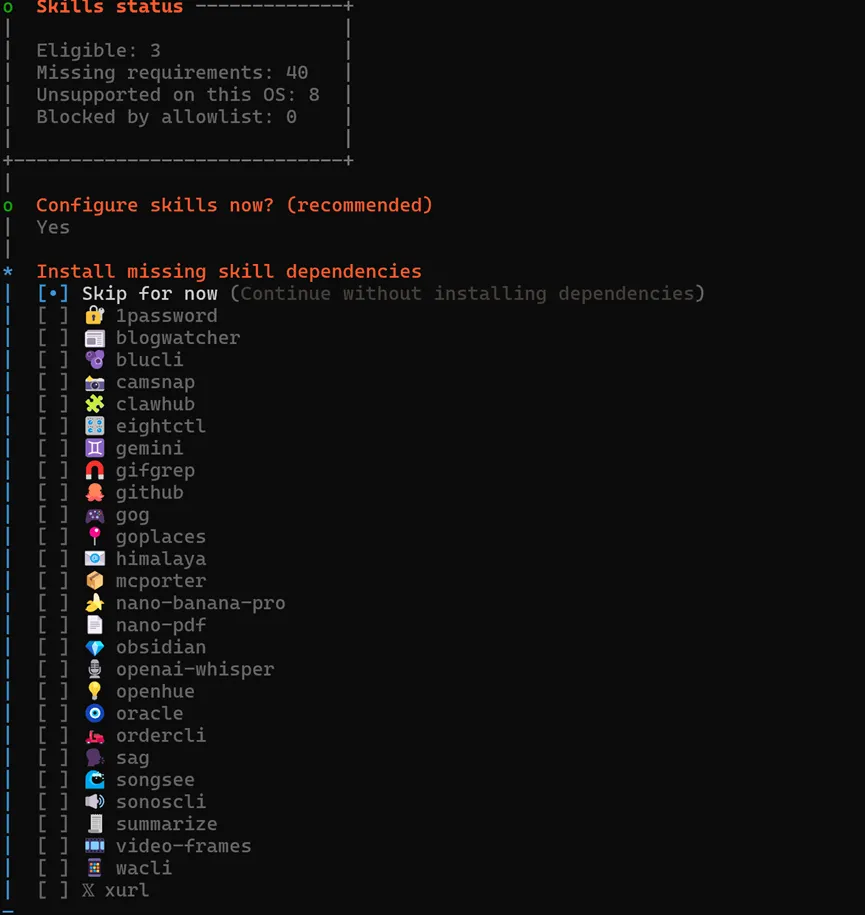 d、技能安装:建议先 Skip(大部分是国外技能,有需要时再安装)