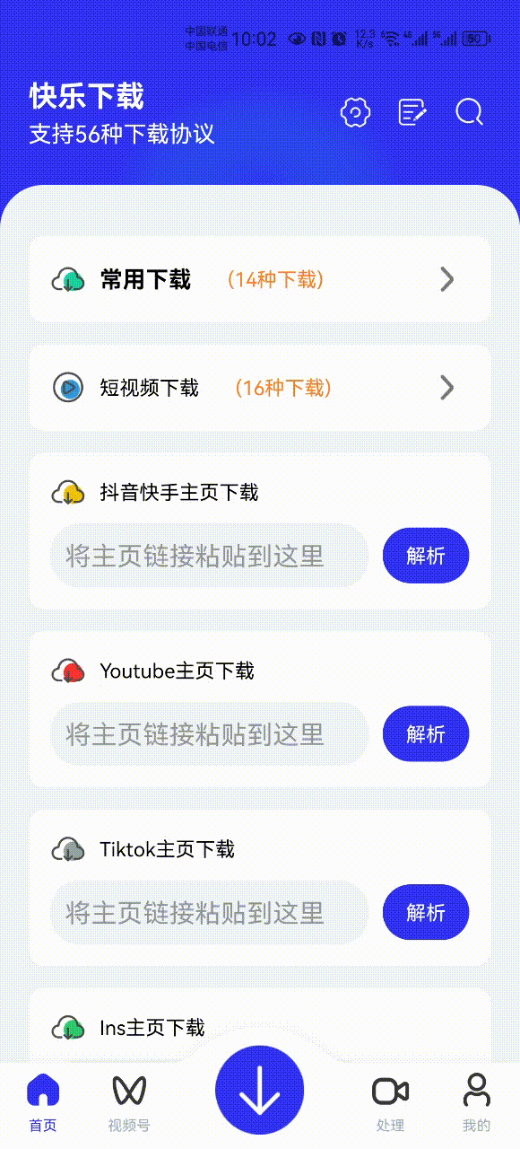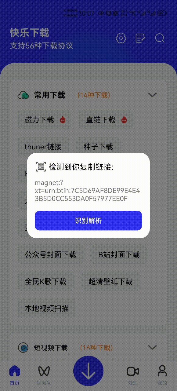 快乐下载是一个非常牛瓣的下载工具软件,软件内有56种下载协议,用户提供各种便捷实用的下载器。包括网络上各种热门的格式,不管是ci力、种子、短视频、图集封面等都支持一键下载,非常强大。