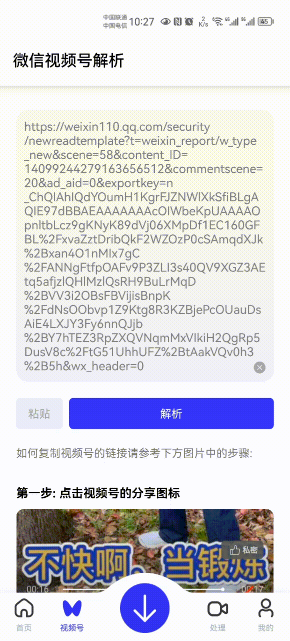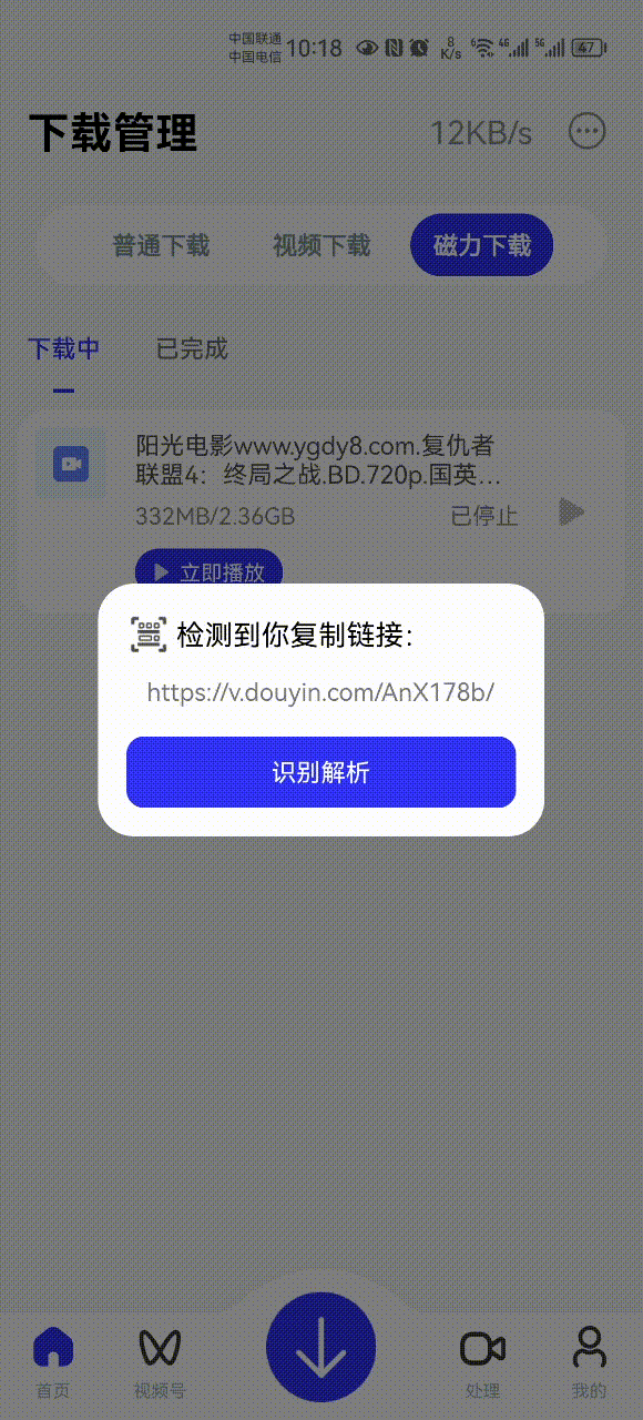 再看看短视频下载功能,直接在短视频平台复制链接,然后打开软件就能识别链接了,下载的视频可以在下载页的普通下载里找到。